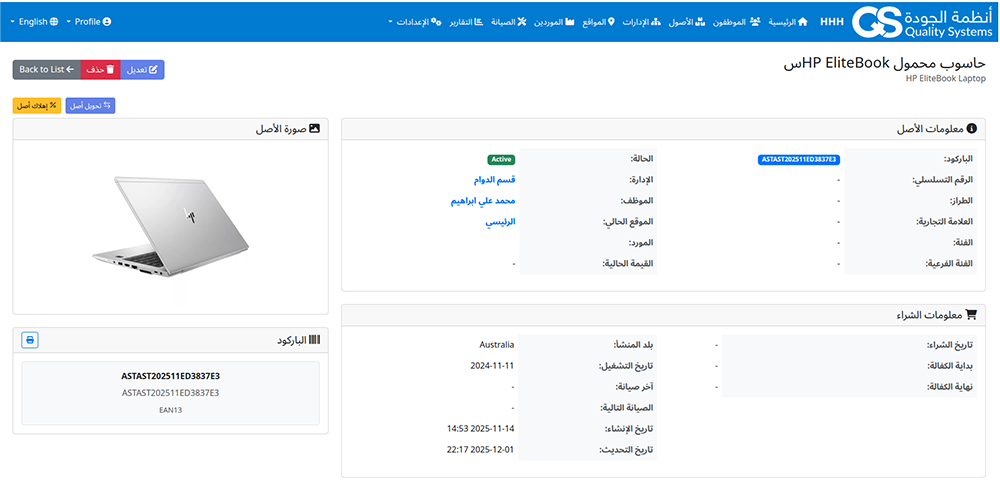 برنامج سهل الاستخدام لإدارة ومتابعة وحصر الأصول