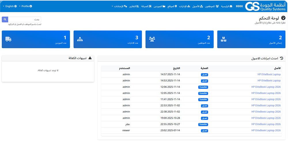 - سجل تاريخي لكل اصل وسجل لكل موظف