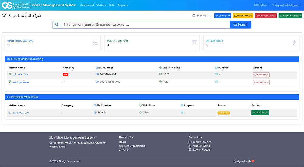 Visitree™ | نظام إدارة الزوار – عربي