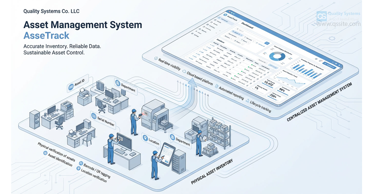 شركة أنظمة الجودة هي المزود لنظام ASSETRACK والذي يوفر جميع البرامج الأجهزة اللازمة لعميات الحصر والتتبع ، مما يجعل نظام ASSETRACK الحل الأكثر اعتمادية