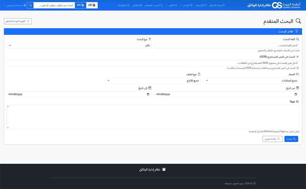نظام الكتروني باللغتين العربية والانجليزية تم تصميمه وتطويره من قبل شركة انظمة الجودة وذلك للقيام لعمليات حفظ وإدارة الوثائق والارشفة الالكترونية حيث يتميز بالسهولة في الاستخدام من قبل جميع المستخدمين. وفق آليه محكمة لادارة الصلاحيات والادوار بالنظام
